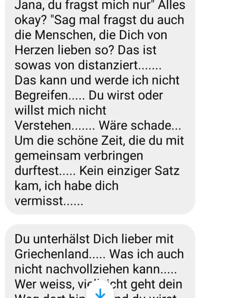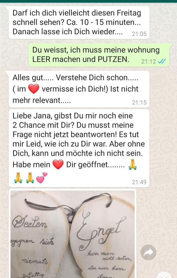 ⚠️⚠️⚠️ BITTE UM HILFE!!! ⚠️⚠️⚠️ Ich werde von einer verheirateten Frau (42) mit Kindern, die meinen Hund übernommen hat, weil ich in einer privaten Notlage war, nachdem sie sich mein VERTRAUEN penetrant erschlich und ich dachte, in der Familie Freunde gefunden zu haben, BEDROHT, ERPRESST, BELÄSTIGT und GESTALKT seitdem sie mir am 02.02.20 in einem Café ihre "Liebe" zu mir gestand. Ich habe ihr gesagt, alles ihrem Mann zu erzählen,wenn sie nicht aufhört, dann drohte sie mir nur, sie würde mir wichtigen Menschen erzählen, dass was zwischen uns liefe, was gar nicht wahr ist - soll ich sie besser anzeigen oder lieber nicht??? ICH HABE IHREN GANZEN SMS-TERROR GESPEICHERT!!!!!!!