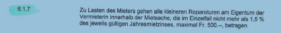 Was sagt ihr zu dem Punkt im Anhang von meinem Mietvertrag für Geschäftsräume. Es geht um eine Rechnung. Wir konnten die Balkontüre nicht mehr schliessen. Es musste der Schliessmechanismuss durch ein Fachmann ersetzt werden.