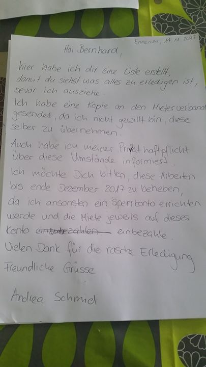 Darf ich dass so? Fotos von der Mängelliste und den Brief an den Vermieter (wird noch ins Reine geschrieben)anbei