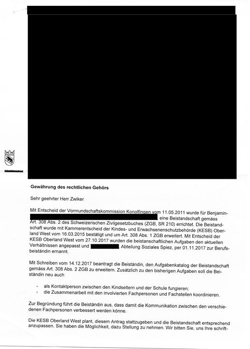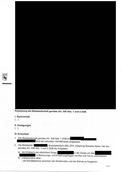 Hab im Januar den Bescheid der Kesb bekommen das Sie die Beistandschaft des Sohns erweitern wollen.