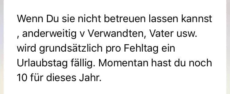 Das ist ein Ausschnitt aus einer E-Mail von meinem Arbeitgeber als ich gemeldet habe dass meine Tochter krank ist.