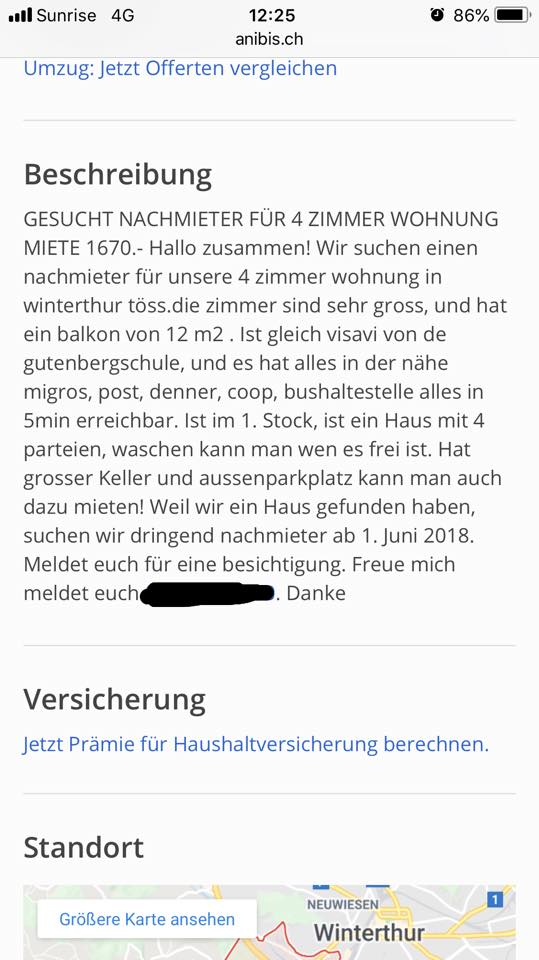 Ich habe ein Zuspruch auf eine Wohnung bekommen. Inseriert wurde mit 1670.- Brutto