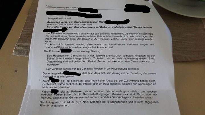 Folgender Antrag wurde bei meiner Freundin in der Wohnbaugenossenschaft (Hochhaus) gestellt, an der DV angenommen und neu in die Hausordnung der Wohnbaugenossenschaft aufgenommen (siehe Foto):