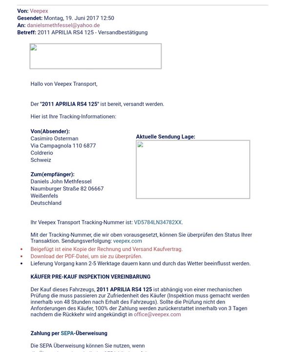 Folgendes Problem. Bekannte von Deutschland hat mir heute diese email geschickt. Weder sie noch ich finden die Transport Firma im Internet. Ware ist immer noch nicht angekommen. Ratlos an wen sie sich wenden können da das Geld schon bezahlt wurde. Kennt jemand dieses tranzport Unternehmen in der Schweiz? Bin für jede Info dankbar