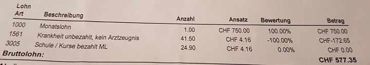 Kann das sein, wenn man kein arztzeugnis hat das so viel vom Lohn abgezogen wird? -172.65 franken bei einer woche von 5 tagen