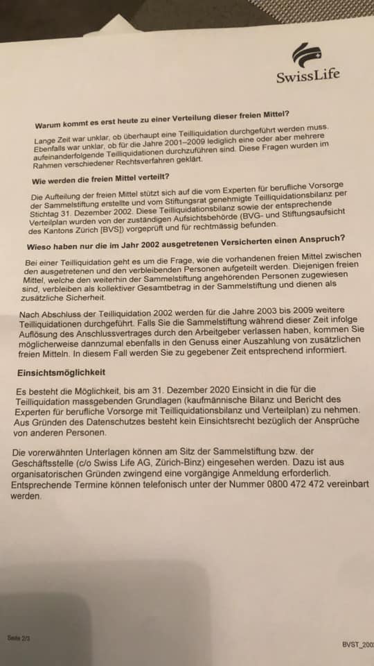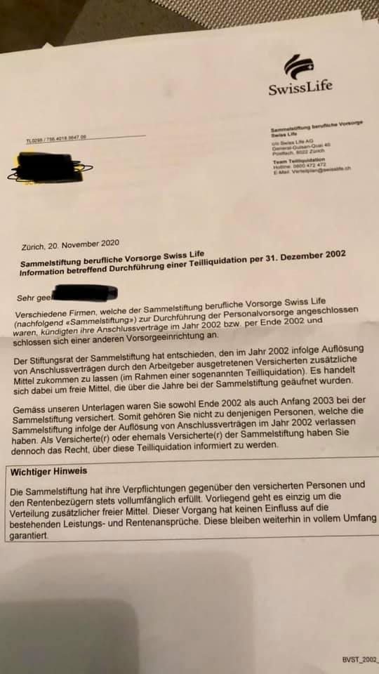 Meine Grosseltern erhielten dieses Schreiben von der ehemaligen Pensionskasse. Sie sind momentan in Rente und jetzt möchten sie wissen, was genau mit dem Schreiben von gemeint ist & ob sie irgend einen Anspruch haben?